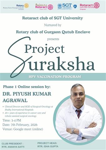 Our Rotaract Club of SGT University successfully organised an onlin. . .